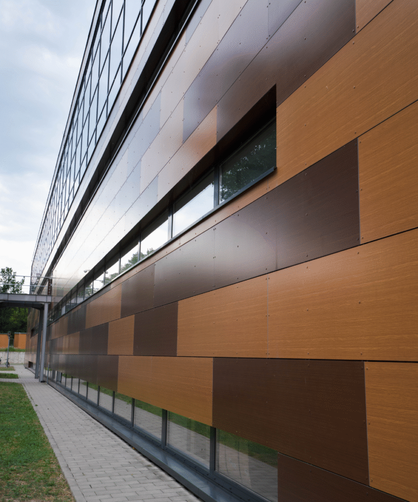 Design and functionality adapted for high-humidity environments, featuring aluminum windows and doors, Schüco curtain wall systems and ventilated facades with composite panels.