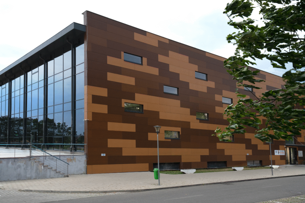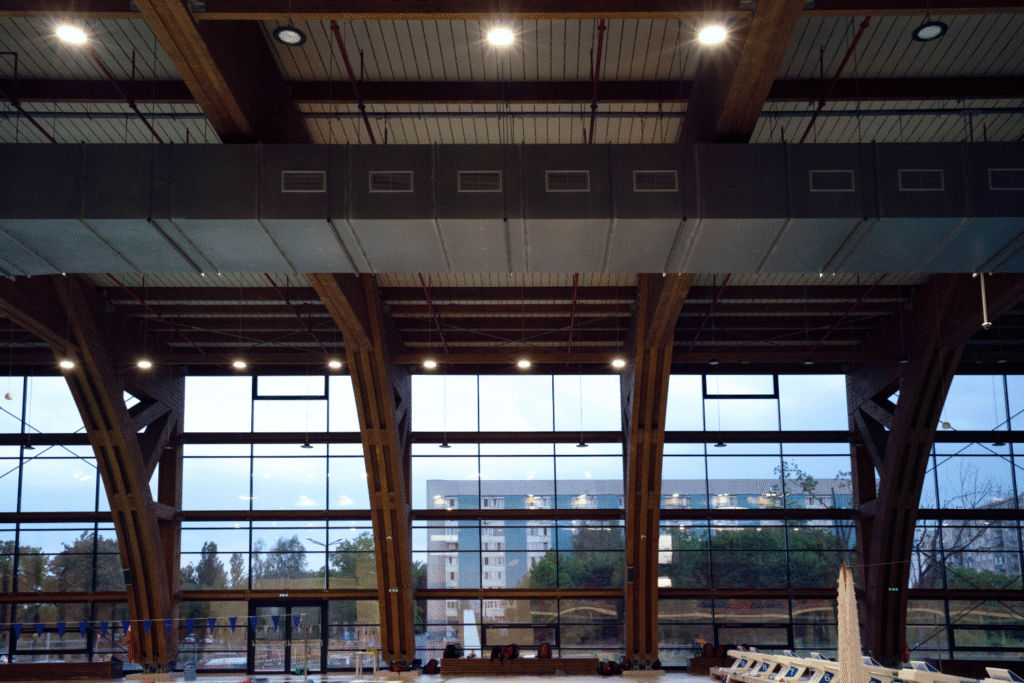 Design, fabrication and installation of aluminum glazing systems and Schüco curtain walls, complemented by ventilated aluminum composite panel cladding. Total surface area: 4,300 sqm. A project designed to meet the demands of a modern sports facility in high-humidity conditions.
