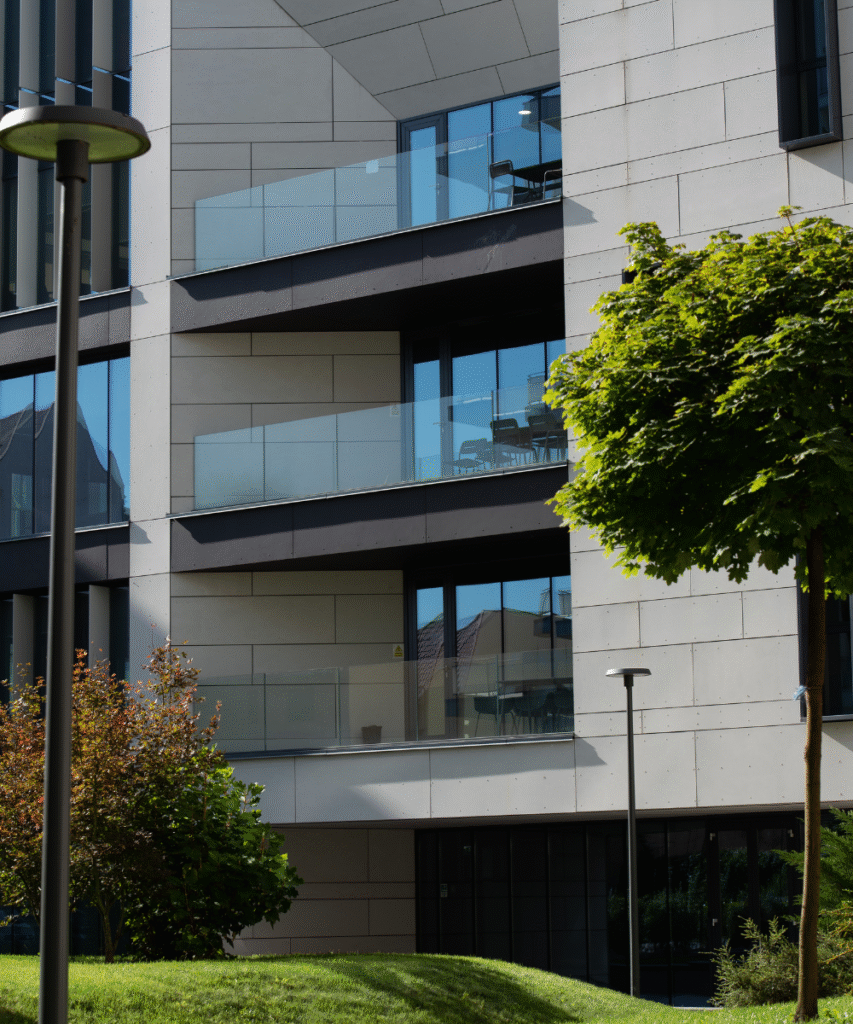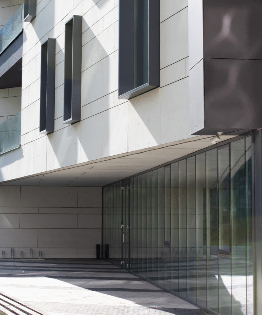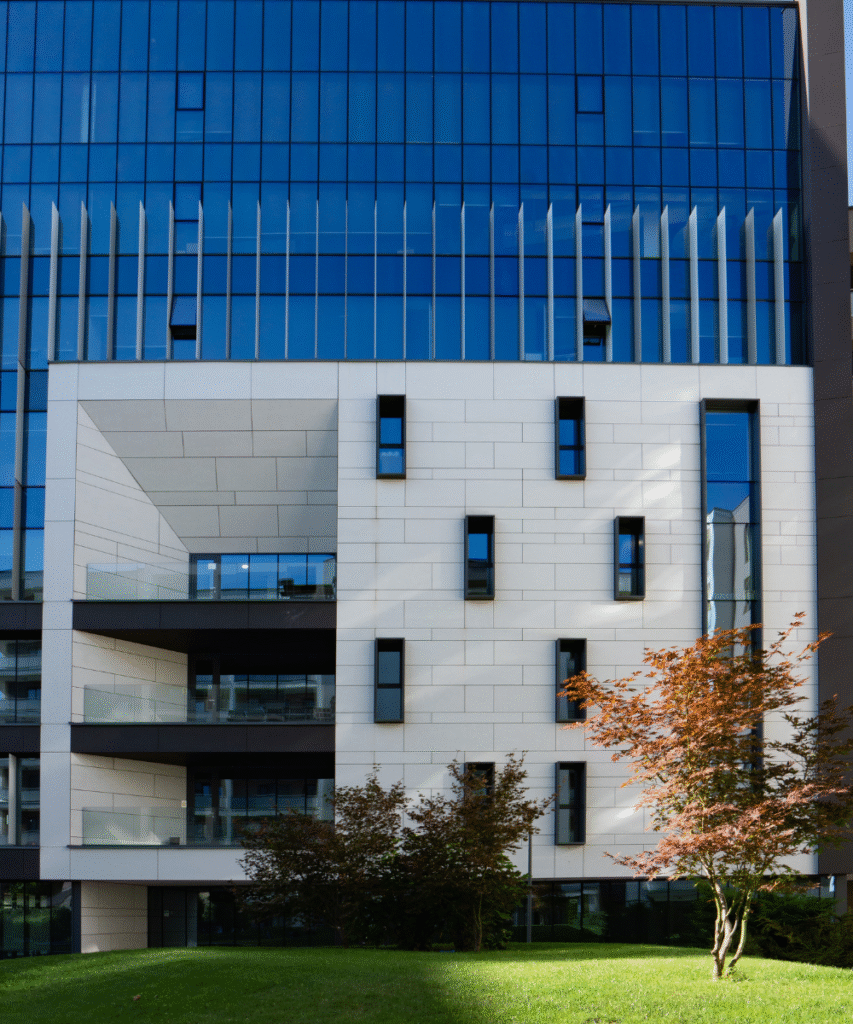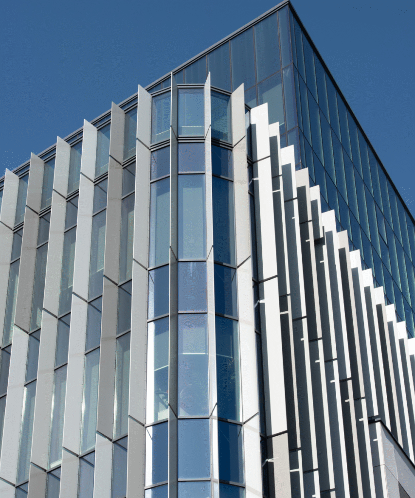 Proiect complex cu fațade cortină, tâmplărie din aluminiu, placare ventilată și sisteme de umbrire
